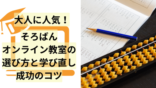 オンラインそろばん教室 大人に人気!そろばんオンライン教室の選び方と学び直し成功のコツ 大人の学び直しに人気のそろばんオンライン教室。通学不要で自宅から挑戦できる魅力と、挫折しない選び方のコツを丁寧に解説します。 2025.09.30 オンラインそろばん教室