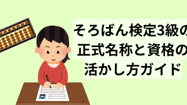 そろばん検定・資格 そろばん検定3級の正式名称と資格の活かし方ガイド そろばん検定3級の正式名称や履歴書への書き方を初心者向けにやさしく解説。検定の種類や学び直しの体験談、オンライン教室の選び方まで、資格を活かすためのヒントが満載です。 2025.10.15 そろばん検定・資格