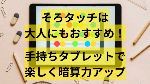 オンラインそろばん教室 そろタッチは大人にもおすすめ!手持ちタブレットで楽しく暗算力アップする方法 そろタッチは大人にも人気のデジタルそろばん教材。手持ちのタブレットで1日10分、ゲーム感覚で暗算力を鍛えられます。無料体験で気軽にお試しを。 2025.10.20 オンラインそろばん教室