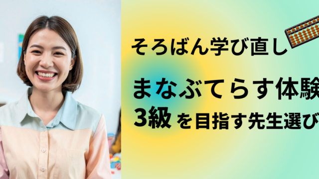そろばん教室の選び方・体験談 まなぶてらすで3級を目指す|先生を決めるまでの体験記【そろばん学び直し】 50代からそろばんを学び直した体験談。独学と通信講座で3級を目標に練習した中で、オンライン家庭教師「まなぶてらす」の体験レッスンを受講。2人の先生を比較し先生を選んだ理由や、独学との違い、3級対策のポイントを詳しくまとめました。 2026.03.10 そろばん教室の選び方・体験談
