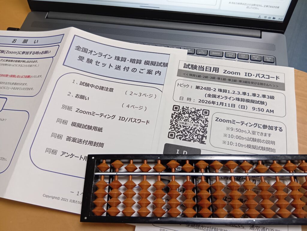 【【珠算3級】 全国オンライン珠算模擬試験】をZoomで受験しました。
