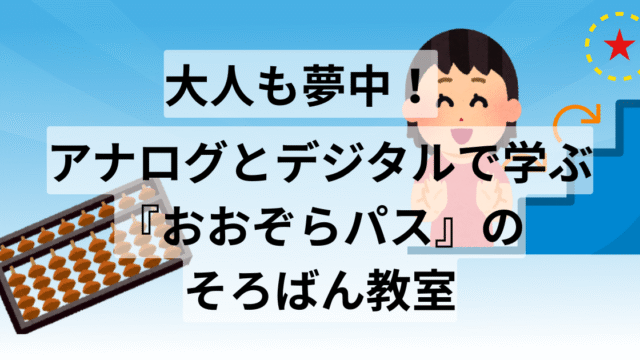 そろばん教室の選び方・体験談 大人も夢中!アナログとデジタルで学ぶ『おおぞらパス』のそろばん教室 大人の学び直しに最適なそろばん教室。月額3,980円でそろばんと教材を含む、動画添削付き。数字に苦手意識がある人でも安心して続けられる、新しい学びの形を紹介します。 2025.05.15 そろばん教室の選び方・体験談