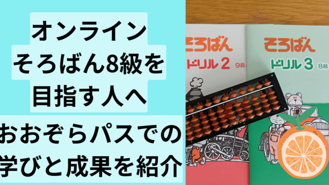 大人のそろばん オンラインそろばん8級を目指す人へ:おおぞらパスでの学びと成果を紹介 50代からのそろばん学び直し体験!オンライン教材「おおぞらパス」で8級問題集を1か月でやり切ったリアルな学習ペースと、実際に感じたメリット・惜しい点を詳しくレビューします。 2025.06.05 大人のそろばん