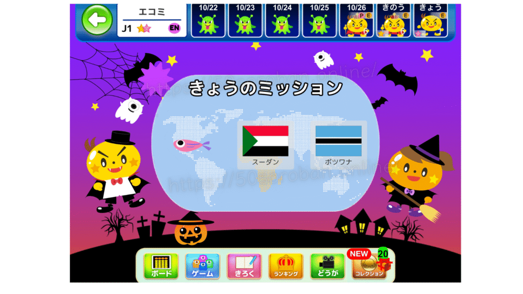 ステージを終えると国旗が集まるしくみで、学びながら学べる感覚。