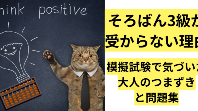 そろばん検定・資格 そろばん3級が受からない理由|模擬試験で気づいた大人のつまずきと問題集 そろばん3級が受からない原因は計算力不足ではありませんでした。大人の私が模擬試験でつまずいた理由と、不合格から見えた試験対策の考え方、問題集を使った練習法を体験談でまとめました。 2026.01.20 そろばん検定・資格